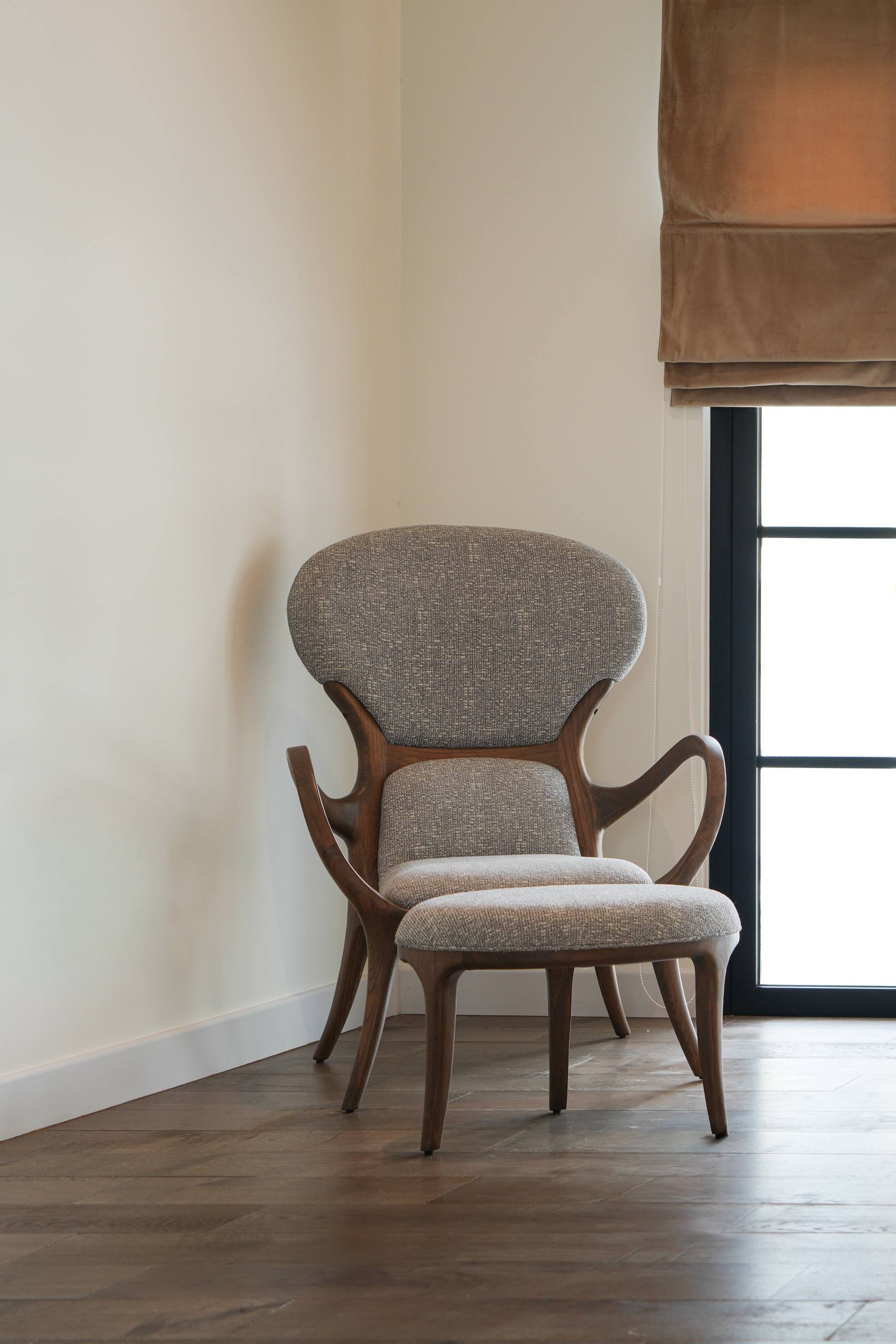 Introducing the most comfortable chair for relaxing! The Baroque highback lounge chair is architected for ultimate comfort and pleasure. This is truly a designer worthy armchair with its modern & natural wooden tones fused with supple fabric to complete its classy look. Best of all, it comes with a premium footstool to ensure that your legs & feet get the indulgence it deserves. It comes with multiple colours to choose from & even works great as a cafe furniture!