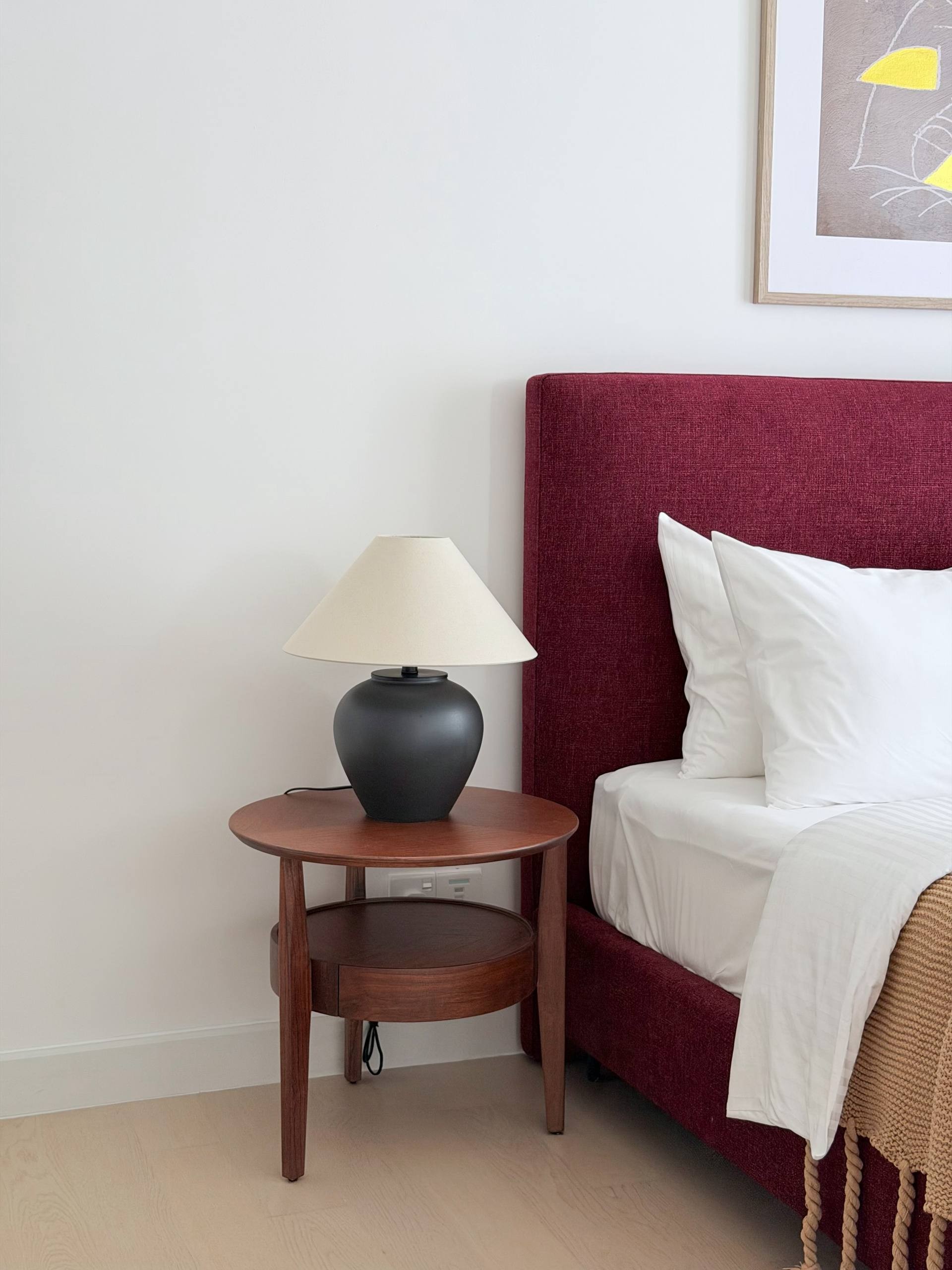 Unique, clean and a masterpiece itself - these would be the three words we use to describe our MORGAN premium bedside table. Made from solid ash wood and comes with six different wood colours, this designer bedside table features a round design with three solid legs. If you’re looking to feature a more unique piece to elevate the look of your bedroom, the MORGAN wooden bedside table is the right one for you!