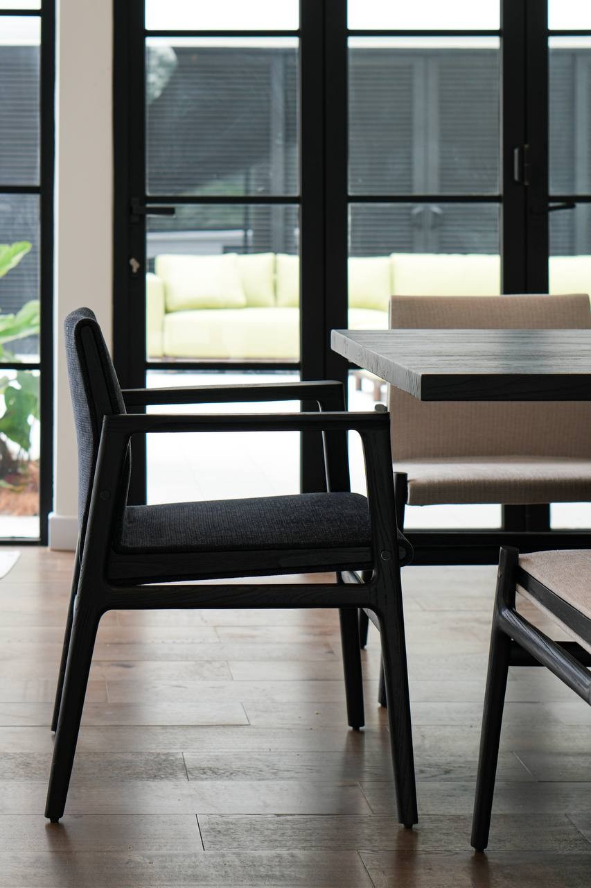 Minimalist lines, solid structure and an elegant look, our Jardin Arm dining chair is a piece that will surely complete your modern dining space. Its understated beauty is its main attraction, and it also comes with six colours for you to pick from. This wooden dining chair is also perfect for any cafe, as it is not only comfortable but also built with belgium fabric - easy maintenance!