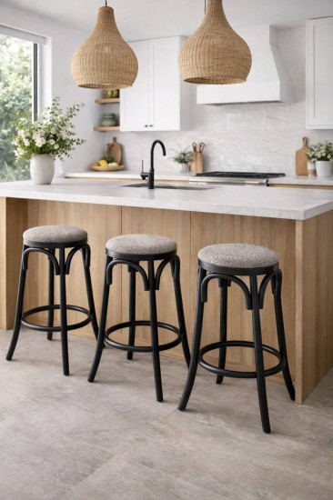 Our rattan bar stool features a classic solid wood frame paired with a cushioned seat. The black wood finish creates a striking contrast against the light-toned cushion, giving it a refined, designer look. Perfect for contemporary and luxury interiors, Coral is a stylish addition to any bar or counter space.