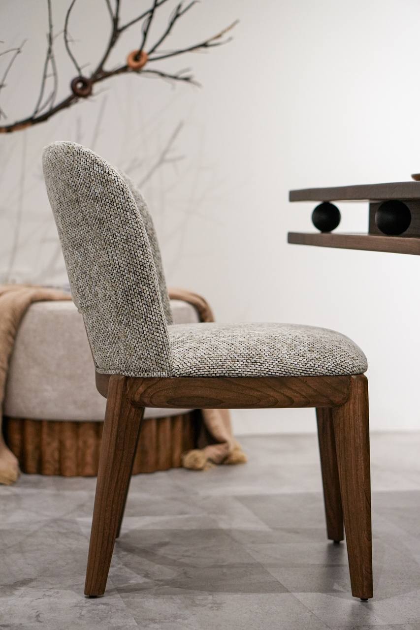 The Umi Chair is a sculptural, modern solid wood chair designed to bring warmth, comfort, and elegance into your space. Crafted from high-quality solid wood, Umi features a softly curved backrest, an upholstered seat, and gently tapered legs that provide both ergonomic support and refined aesthetics. Perfect as a dining chair, accent chair, or bedroom chair, it is designed for versatility in both residential and commercial interiors.