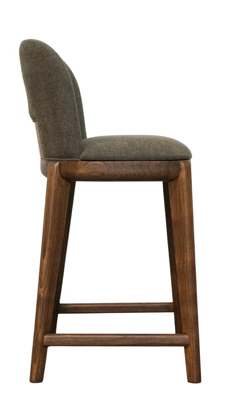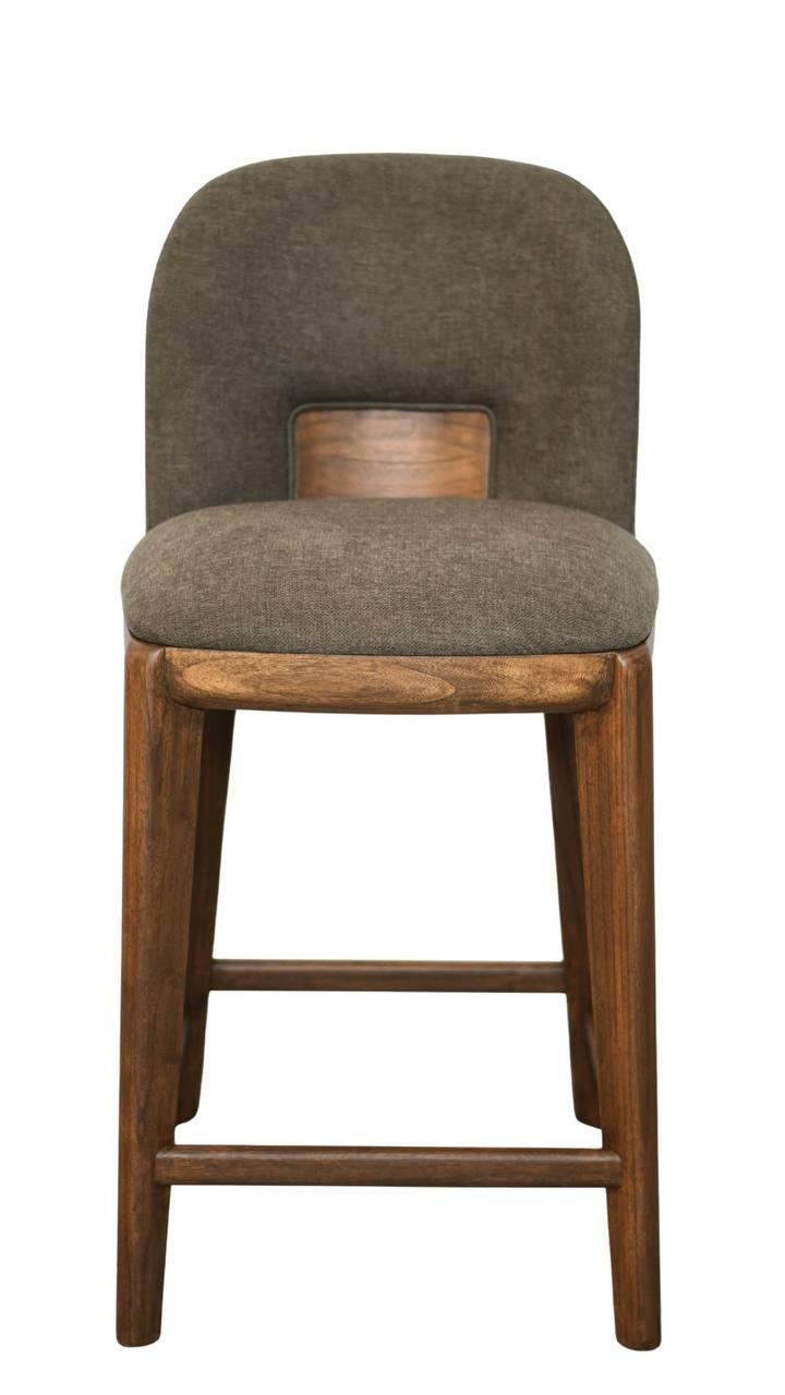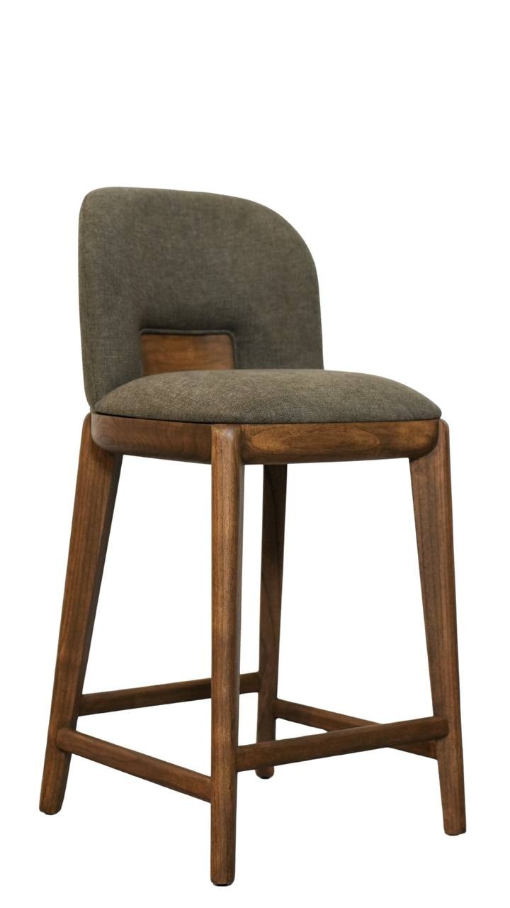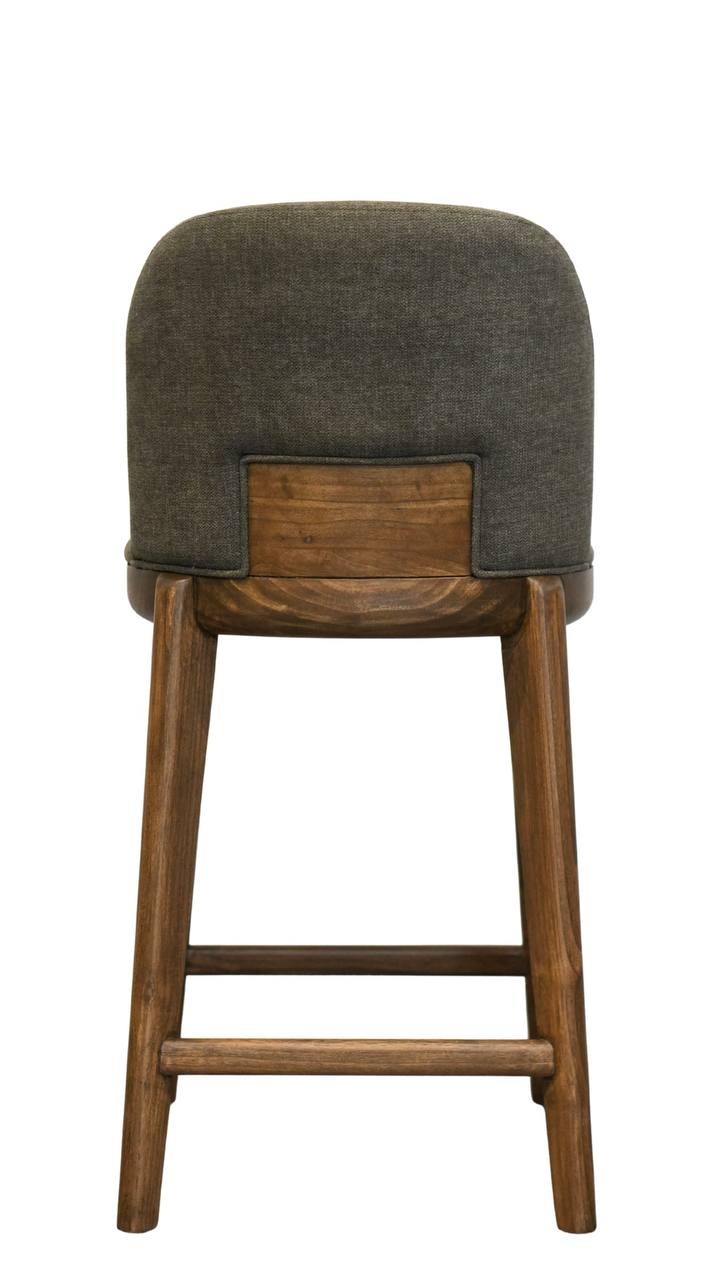 A defining feature of the Umi Barstool is its solid wood back panel — a beautifully sculpted detail that anchors the design with warmth and natural texture. This wooden accent adds depth to the form, balancing the softness of the fabric with the authenticity of timber craftsmanship. From every angle, the barstool reveals a harmonious blend of upholstery and joinery, making it visually striking in both kitchen islands and home bars.