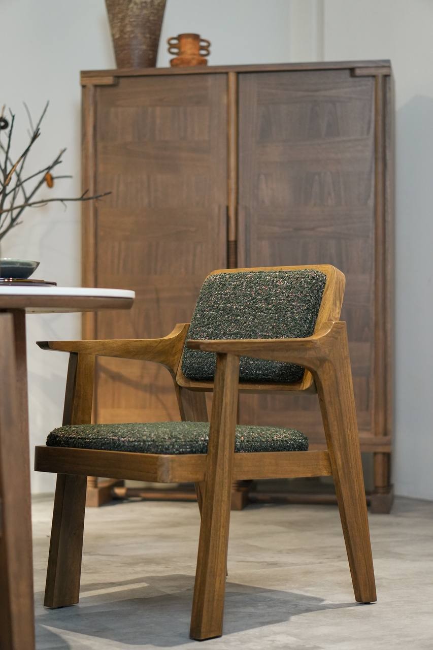 The Yoru Armchair is a study in balanced form and intentional comfort. Crafted with a solid timber frame, upholstered seat, and supportive backrest, this solid wood armchair in Malaysia combines sculptural elegance with everyday usability. Gently curved armrests flow seamlessly into the structure, creating a refined yet welcoming silhouette. Designed for modern living, the Yoru Armchair offers lasting comfort without compromising architectural clarity. Its solid wood legs and frame highlight clean lines and natural wood grain, giving the chair a calm, grounded presence that suits dining rooms, café,living spaces, and contemporary interiors in Malaysia. Whether used as a dining armchair, accent chair, or part of a collaborative space, the Yoru Armchair adapts effortlessly. Thoughtfully proportioned and carefully crafted, it reflects NicChris’ commitment to solid wood furniture and quality craftsmanship. For more ideas for home decoration, click here to visit nicchris Furniture Instagram. For more information, you may contact us at : Jo 012-223 3089 - Nicchris The Yoru Armchair is a study in balanced form and intentional comfort. Crafted with a solid timber frame, upholstered seat, and supportive backrest, this solid wood armchair in Malaysia combines sculptural elegance with everyday usability. Gently curved armrests flow seamlessly into the structure, creating a refined yet welcoming silhouette. Designed for modern living, the Yoru Armchair offers lasting comfort without compromising architectural clarity. Its solid wood legs and frame highlight clean lines and natural wood grain, giving the chair a calm, grounded presence that suits dining rooms, café,living spaces, and contemporary interiors in Malaysia. Whether used as a dining armchair, accent chair, or part of a collaborative space, the Yoru Armchair adapts effortlessly. Thoughtfully proportioned and carefully crafted, it reflects NicChris’ commitment to solid wood furniture and quality craftsmanship. For more ideas for home decoration, click here to visit nicchris Furniture Instagram. For more information, you may contact us at : Jo 012-223 3089