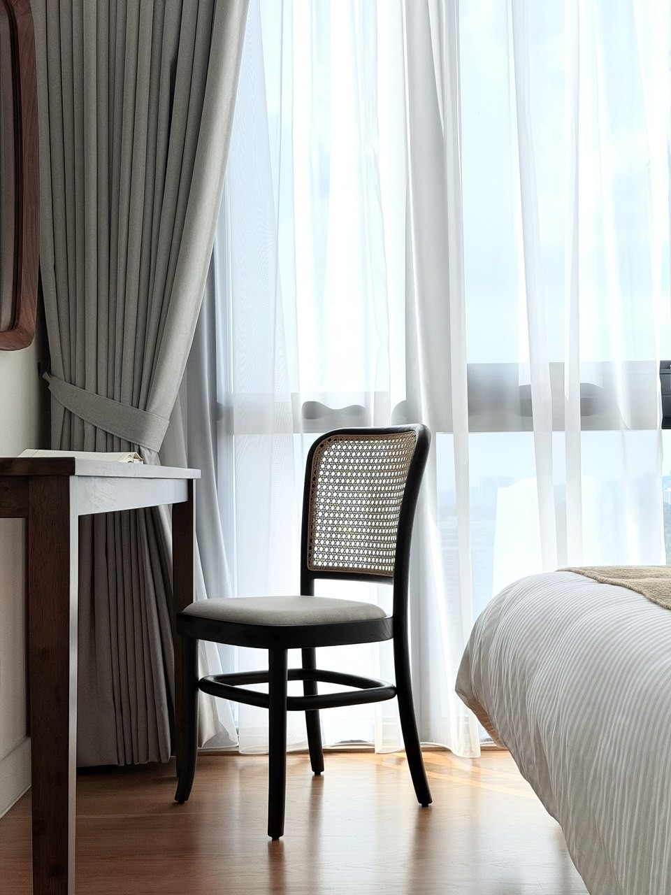 When classic form meets enduring design, the Nico Rattan Chair offers a quiet balance of simplicity and character. Featuring a hand-woven rattan backrest, the chair promotes natural airflow while adding warmth and texture to its silhouette.